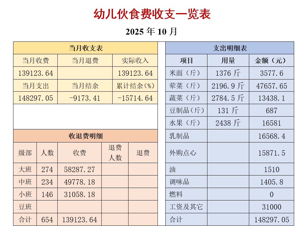 餐费公示